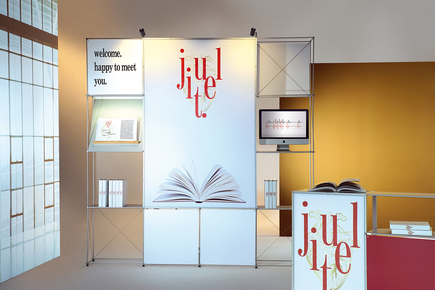 So können Sie mit der clic up Unit JULIET unterschiedlichste Events und Ausstellungssituationen bespielen - egal ob es sich um den Einsatz mit vielen Produkten oder mit Digitalen Medien handelt - Eine hochwertige Schrägablage unterstützt die Präsentation Ihre Infomaterialen.