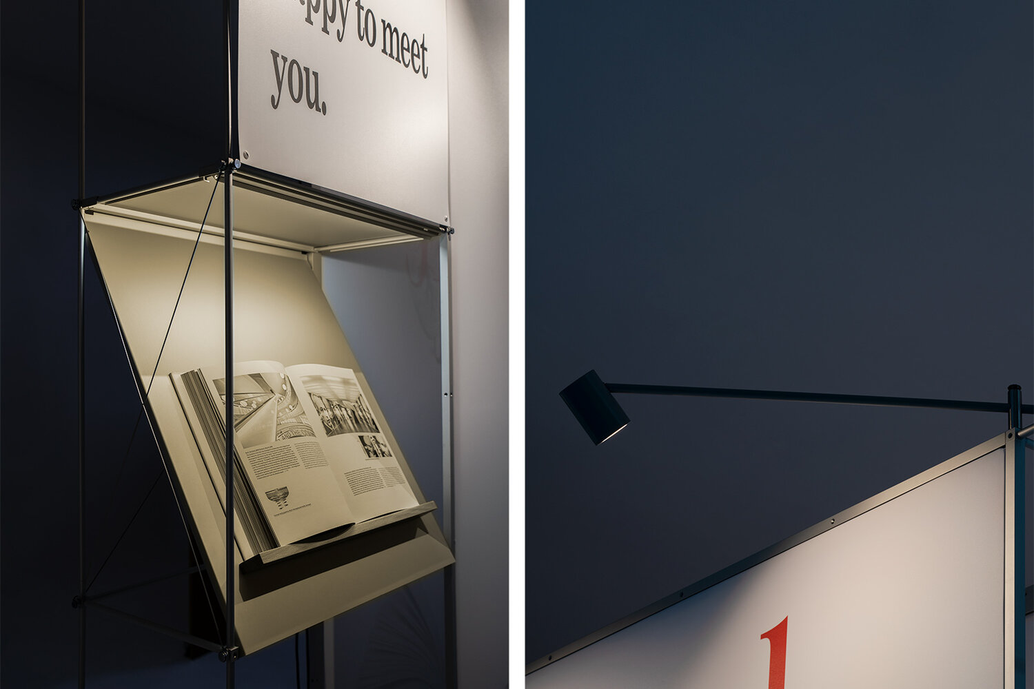 Der eleganten, hochformatigen Grafikfläche stehen großzügige Präsentationsflächen zu Seite.