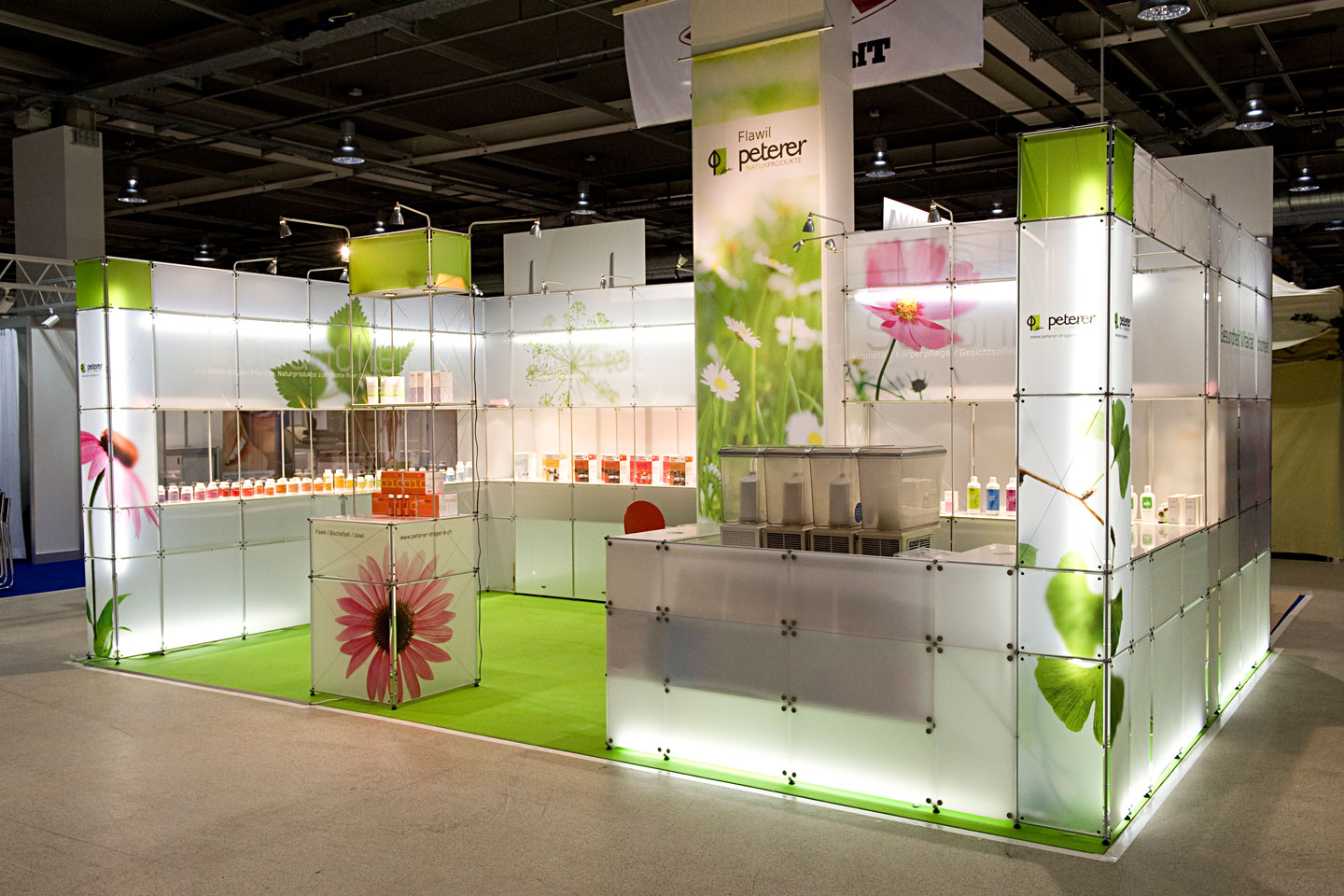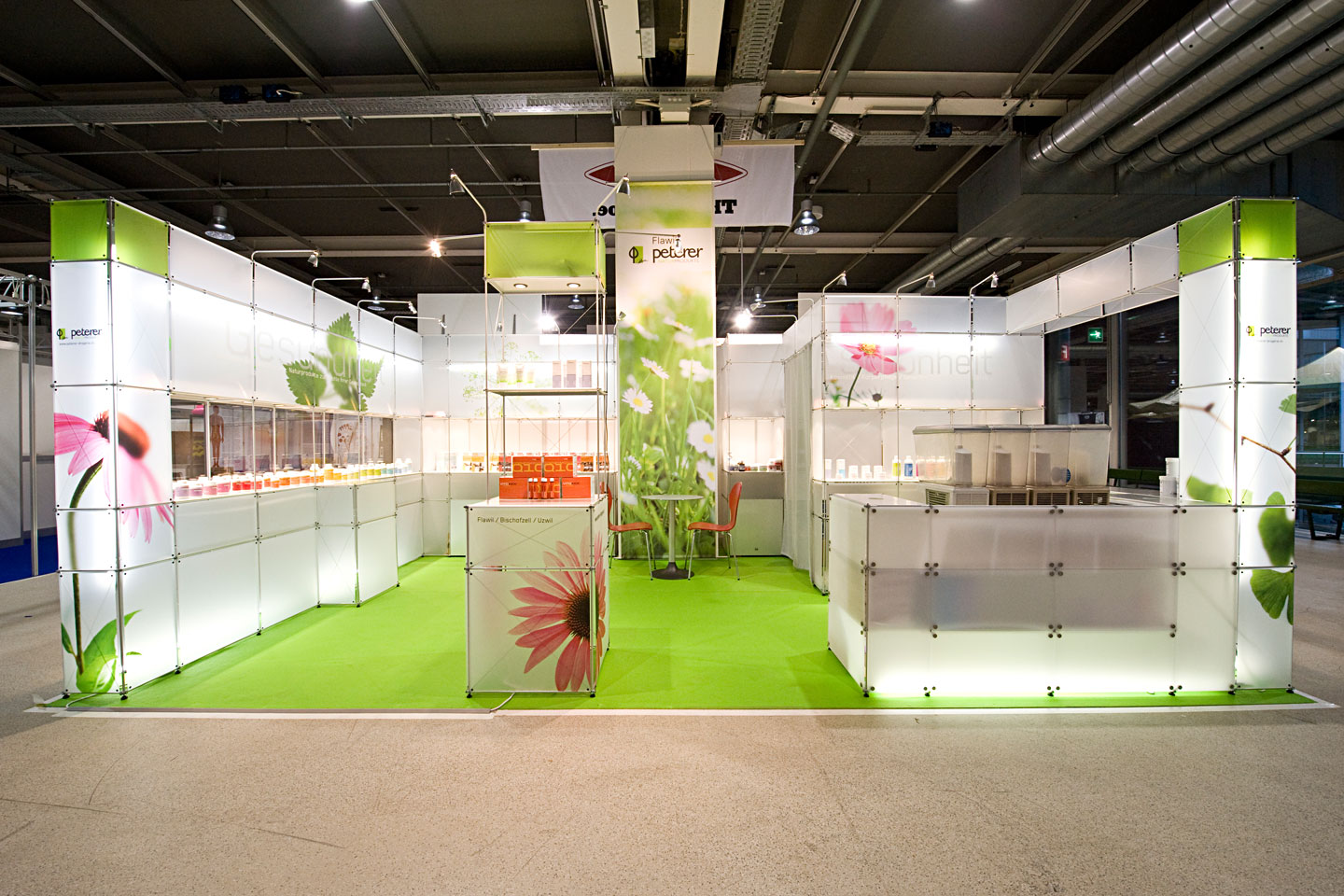 Entstanden ist ein in der Raumkomposition funktionaler, in der Farbkomposition licht und vital anmutender Messestand.